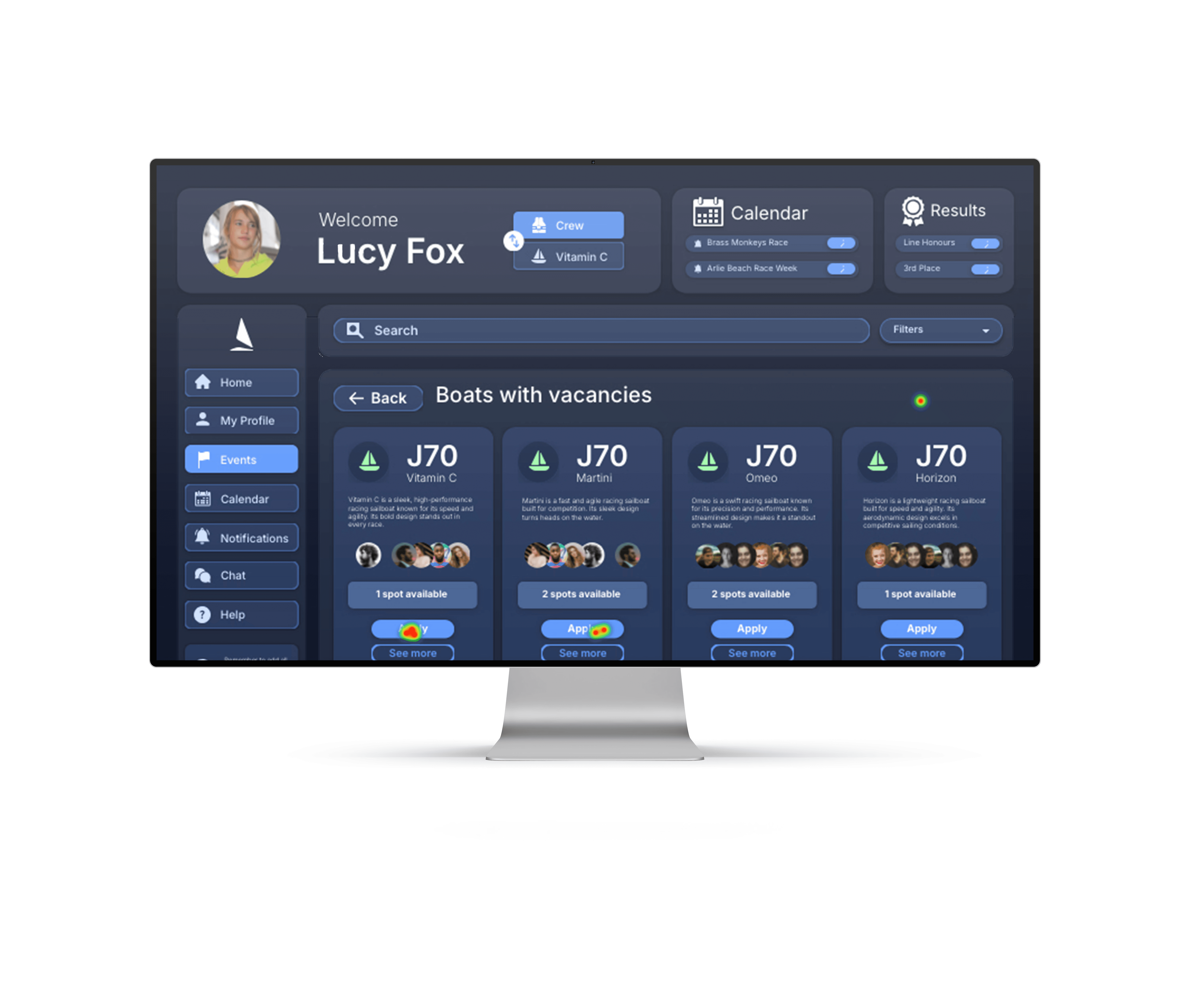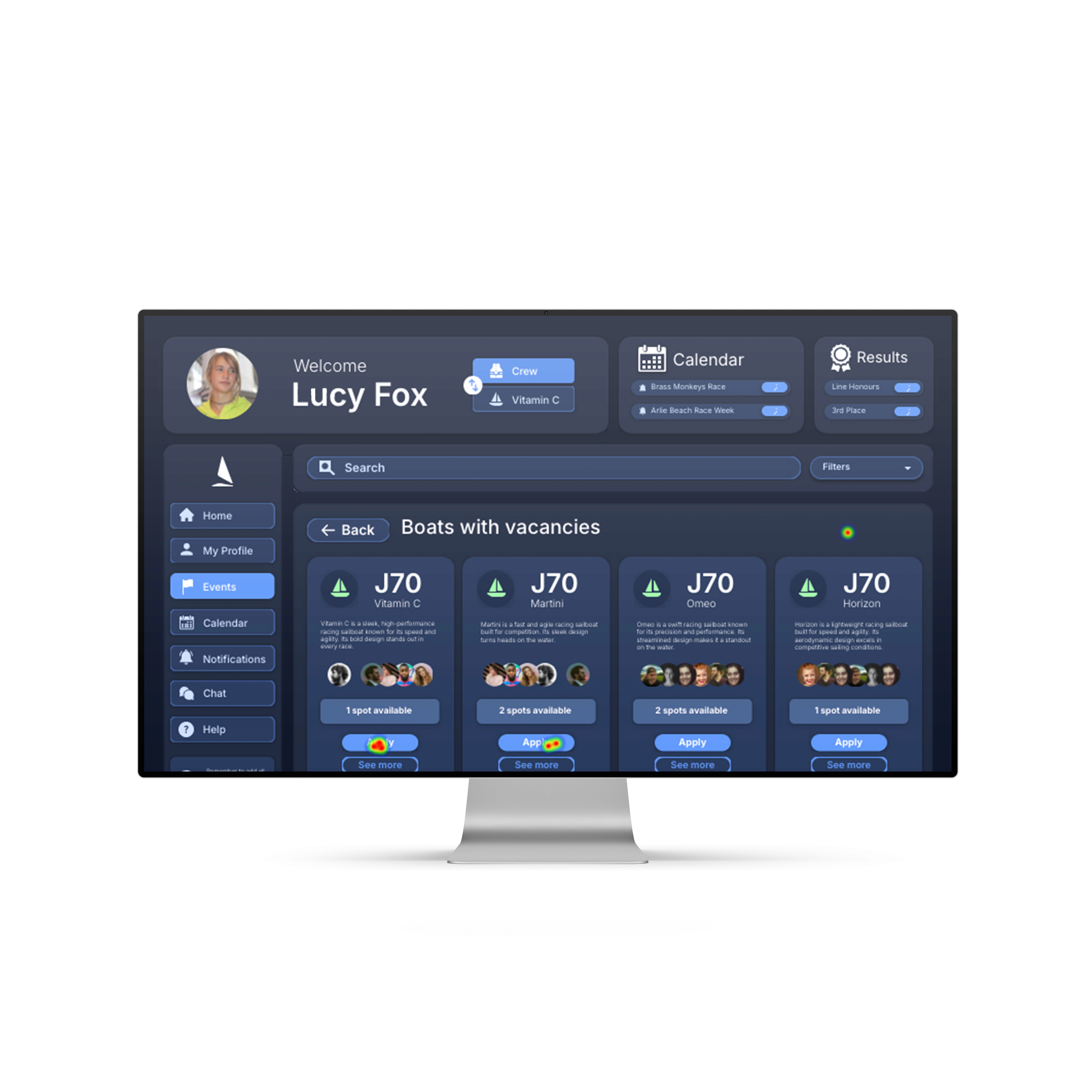 Maze was used to capture quantitative behavioural data and heatmaps from real users. This allowed me to pressure-test the interface's information architecture and validate that the UX was intuitive enough for new sailors to navigate without assistance.