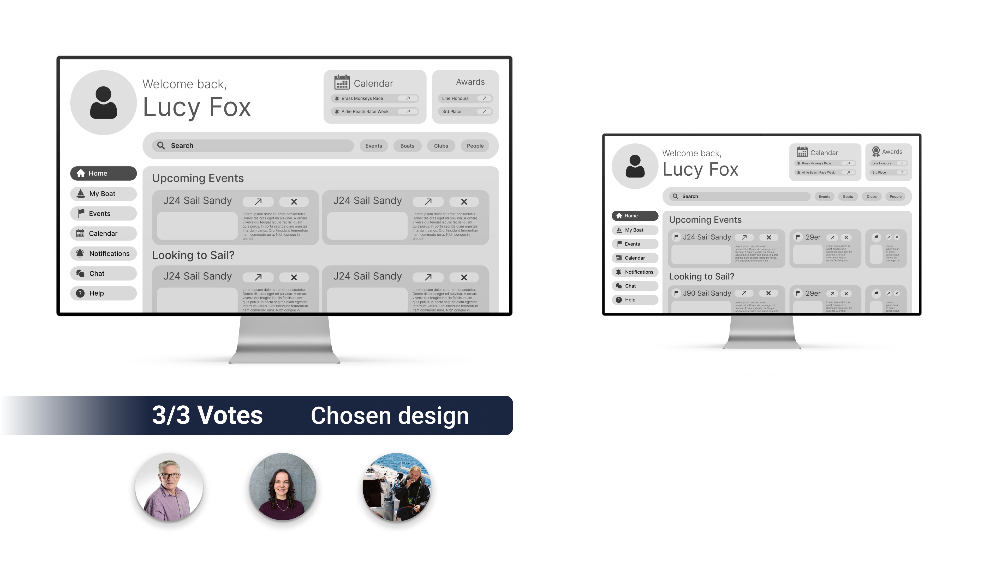 The consensus was unanimous, all users agreed the chosen design more clearly displayed the information that mattered most to them. This concreted the first design iteration of the home screen for the new TopYacht system.