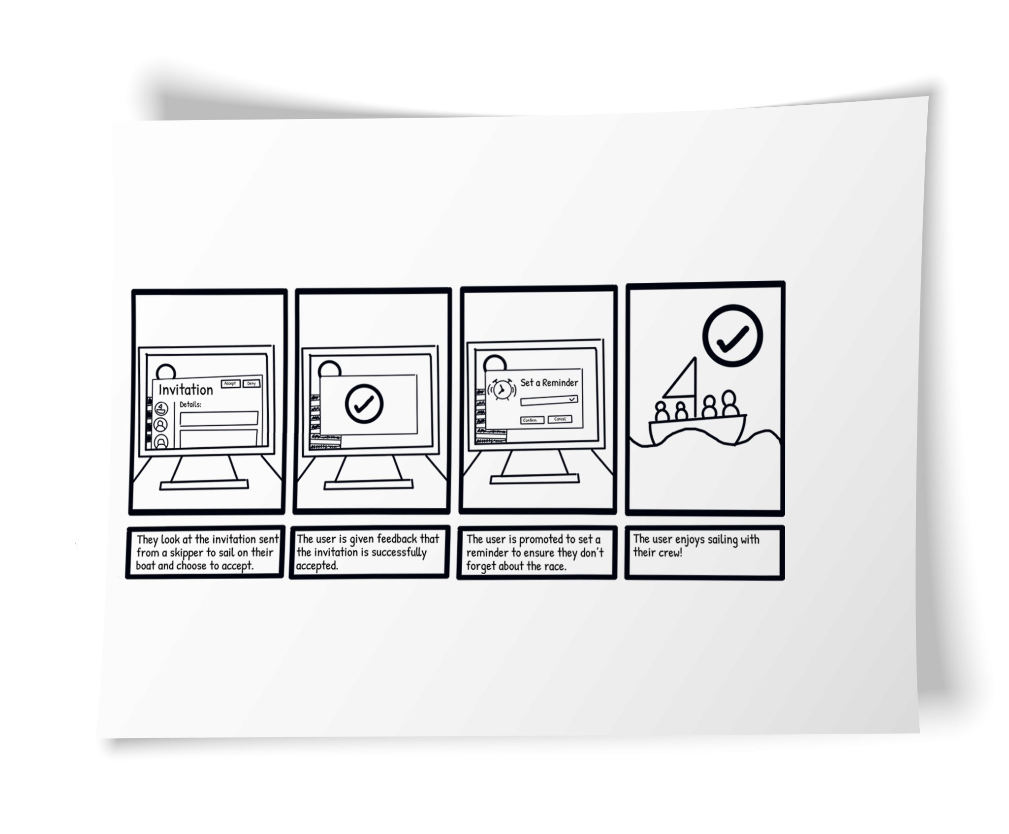 Using these insights above, ideation methods generated quick preliminary solutions that addressed the core issues raised by sailors and provide context on how the product would be used.