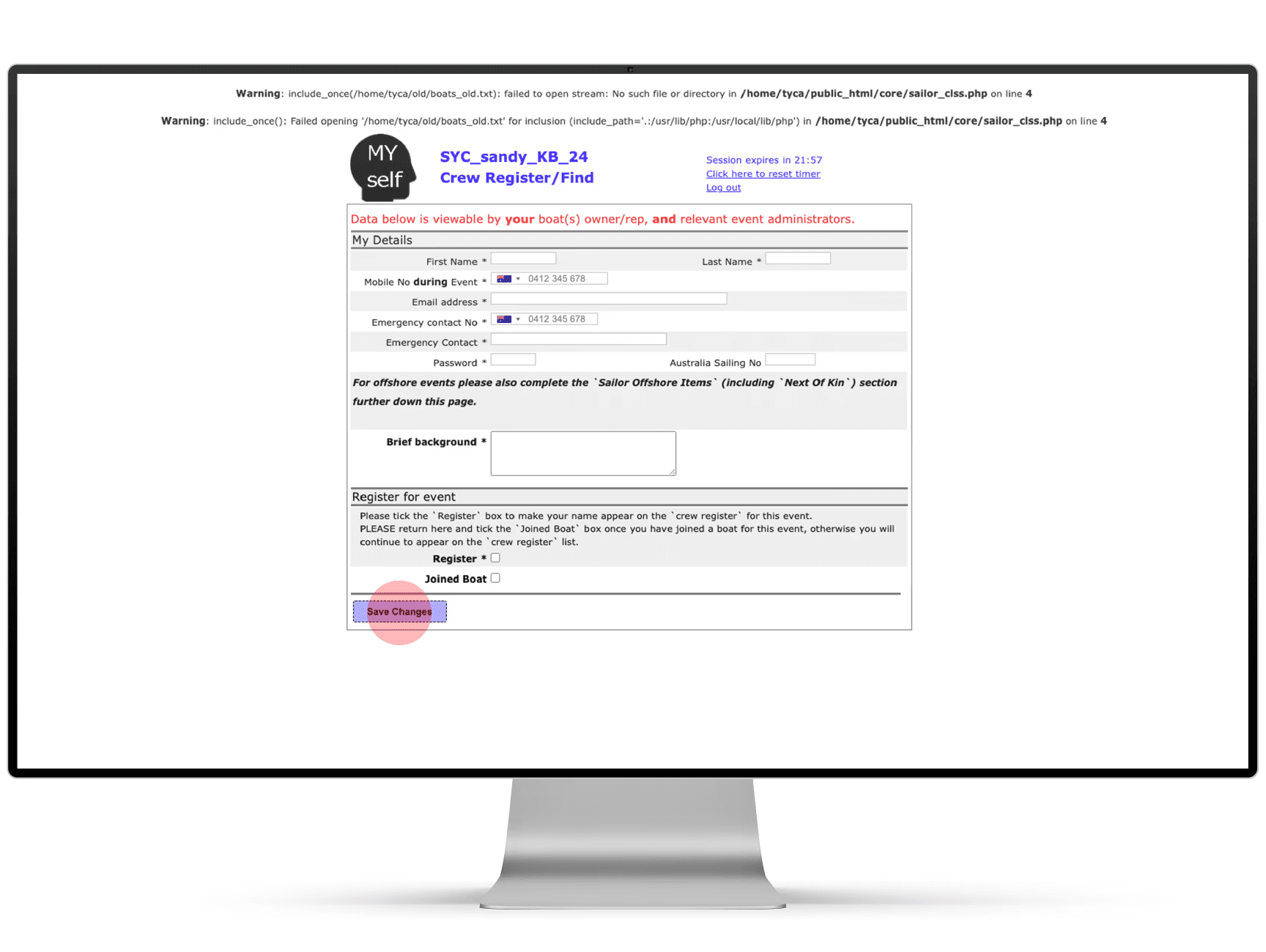 Extend the information requirements on the details entry page to include contact information, emergency contact information, Australian Sailing Number, club membership and written statements.
