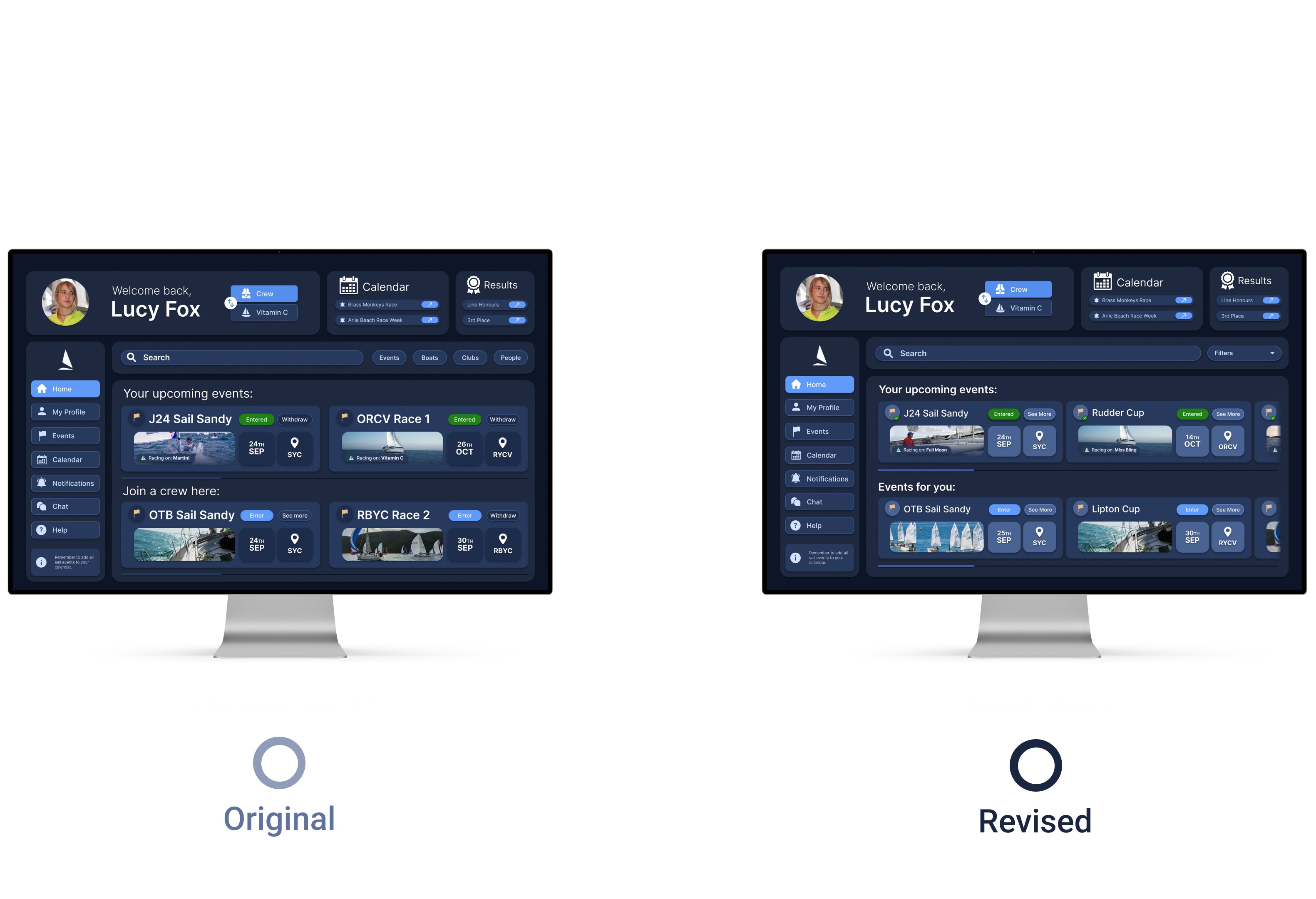 I set out to transform the cluttered, outdated interface into a clear, intuitive experience tailored to the real needs of sailors and race organisers. My goal was to dramatically streamline the user journey, making event registration effortless and improve user sentiment, task completion and reduce time on task.