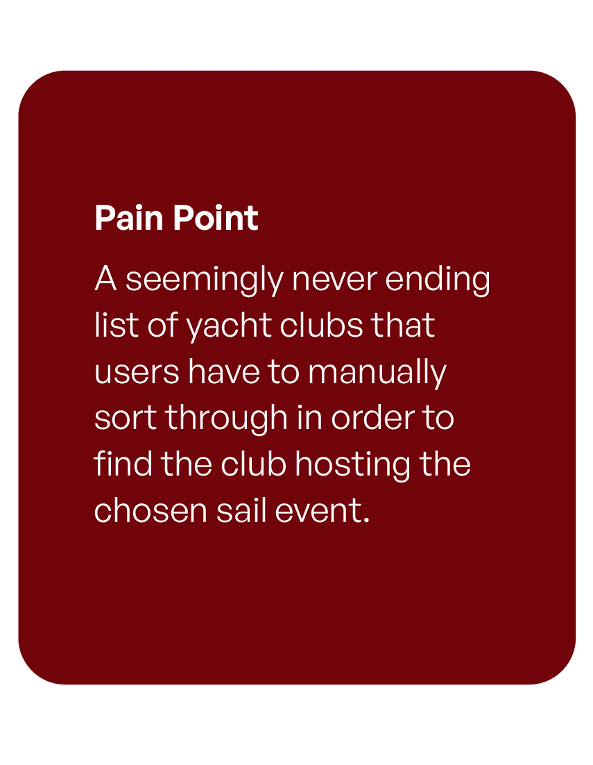It was time to consult real consumers. Conducting interviews shed light on how users navigate the current TopYacht system with specific emphasis on the sail event registration process and the impact the current UI has on the customers’ ability to complete tasks. This allowed for users to pinpoint and communicate specific areas for immediate improvement.