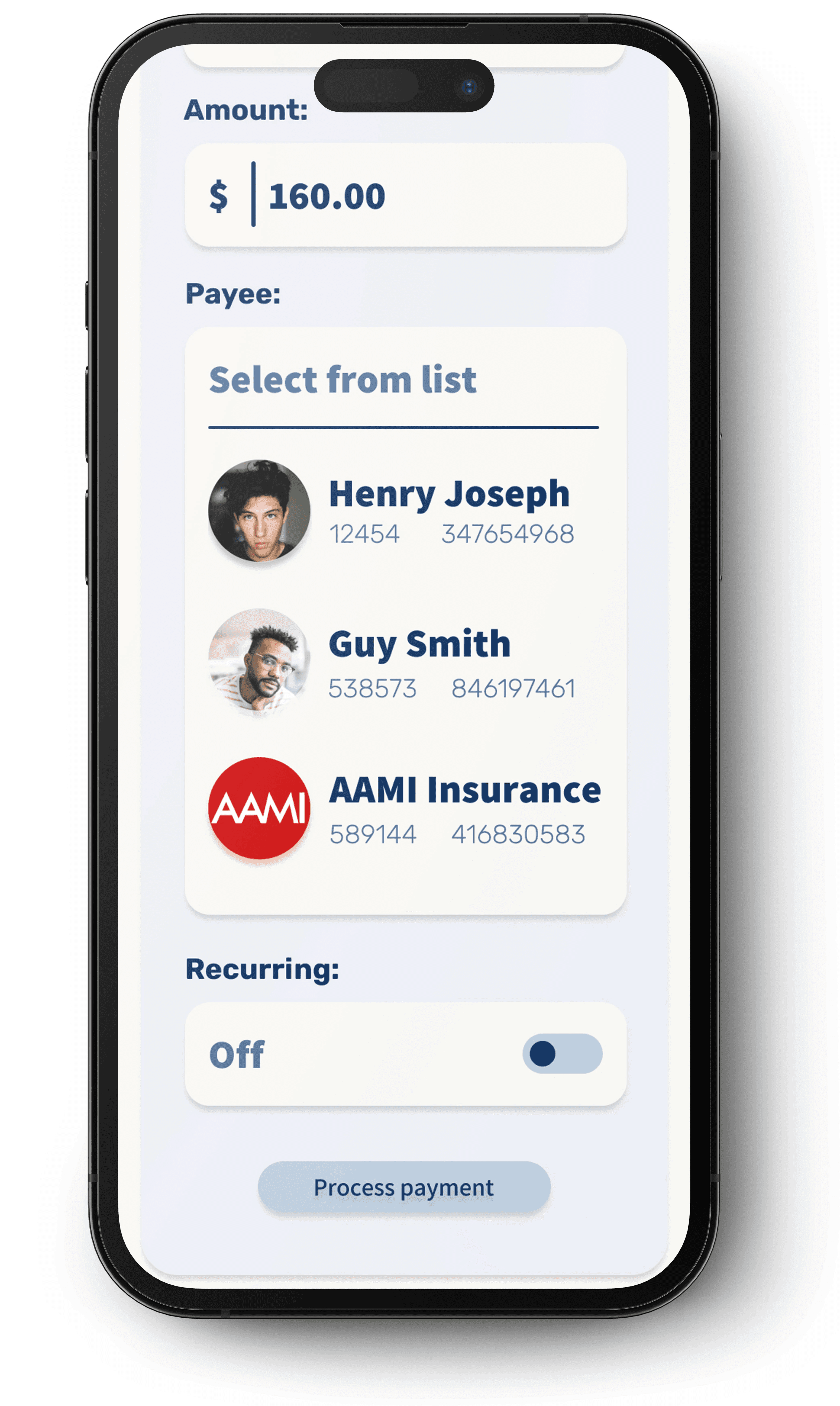 Enable users to add a custom payee directly within the payment window, with the flexibility to choose their preferred payment method — including BPay, PayID, or standard bank transfer — streamlining the process and enhancing convenience.