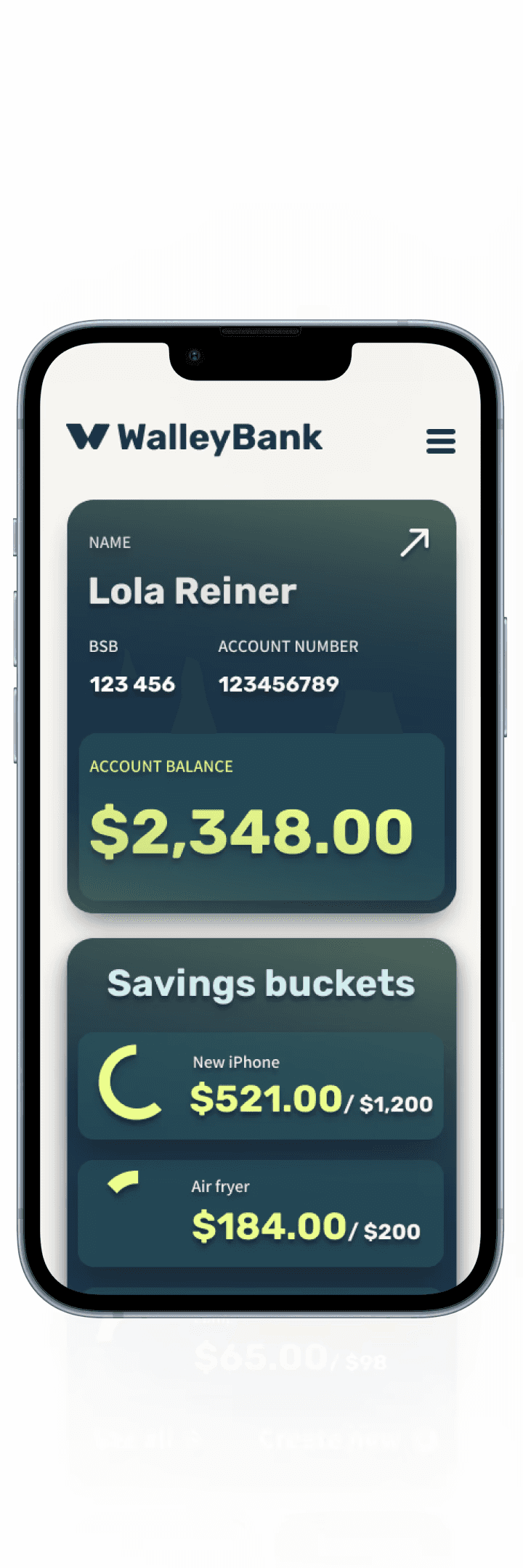 I set out to flip the script on banking. WalleyBank is a bold new banking experience that makes saving simple, satisfying, and genuinely motivating. Whether it’s stashing cash for the small delights or your first home deposit, WalleyBank helps users take control with smart automation, crystal-clear savings buckets, and a UI that actually wants you to succeed.