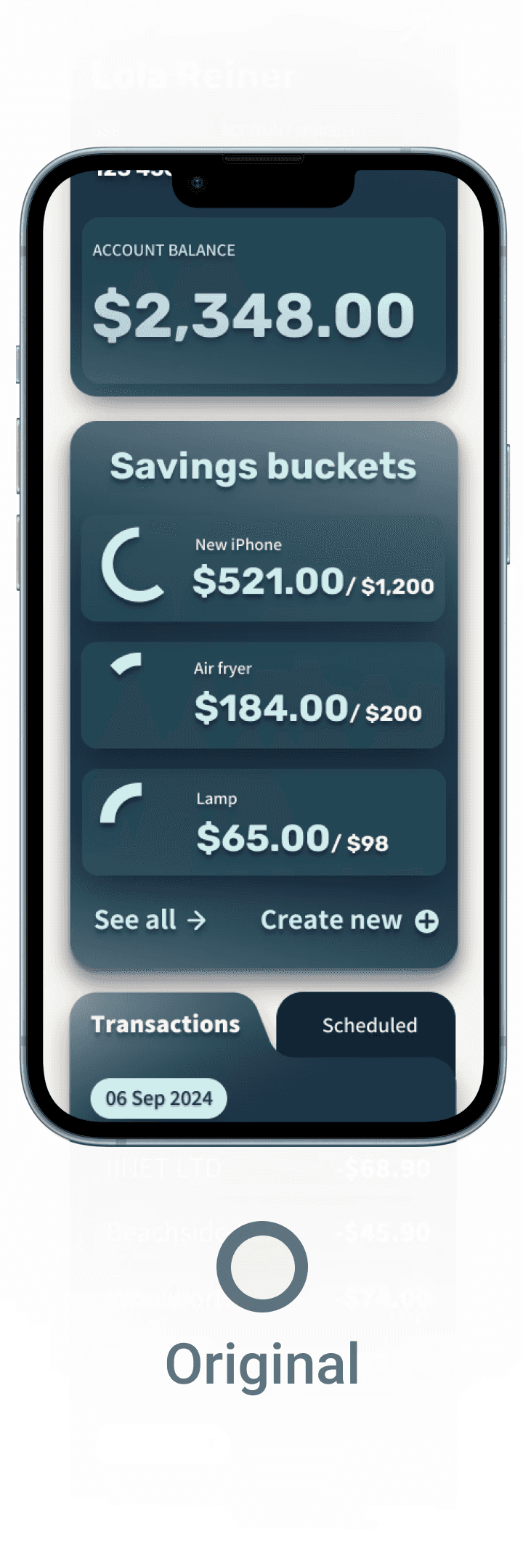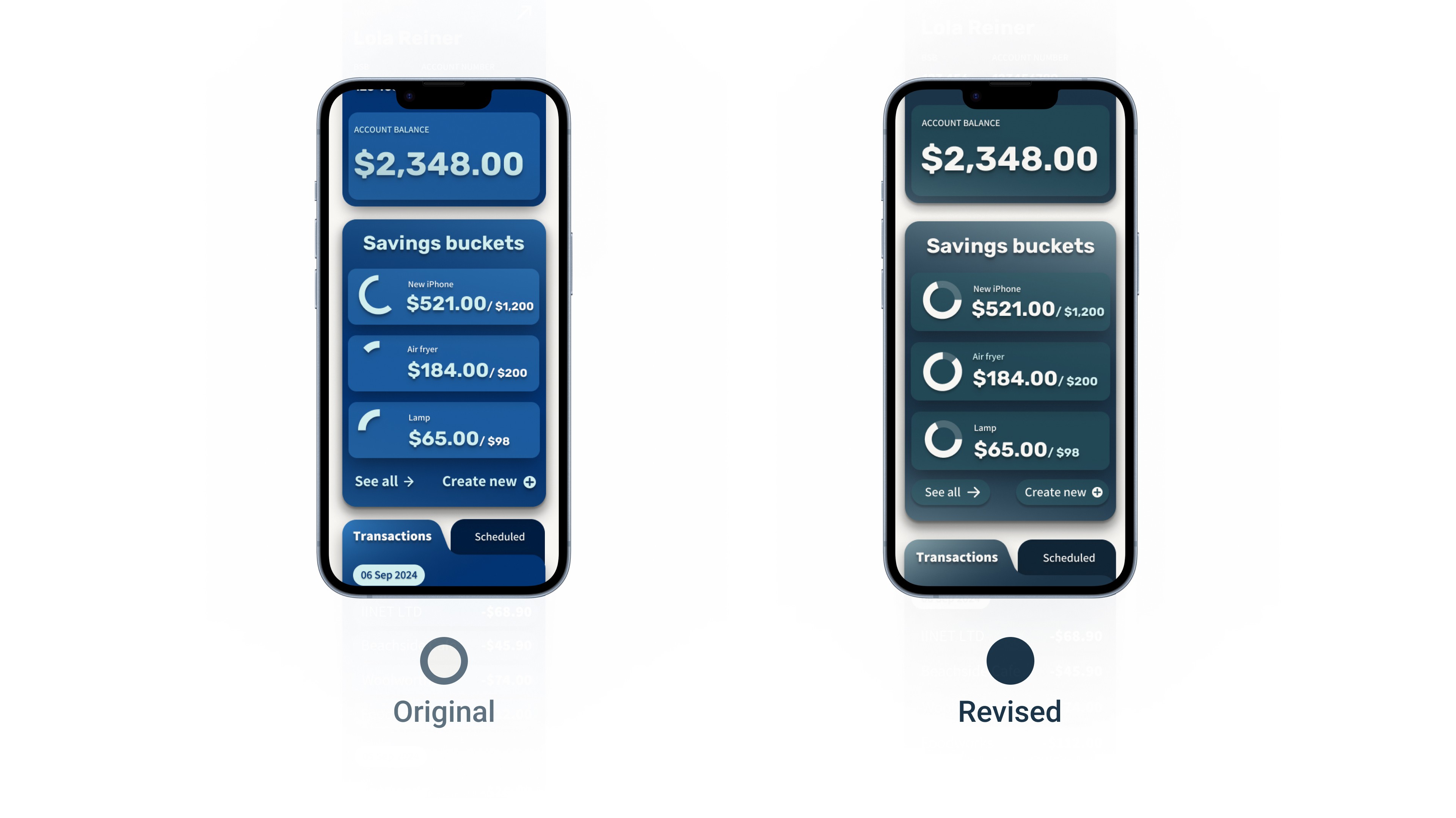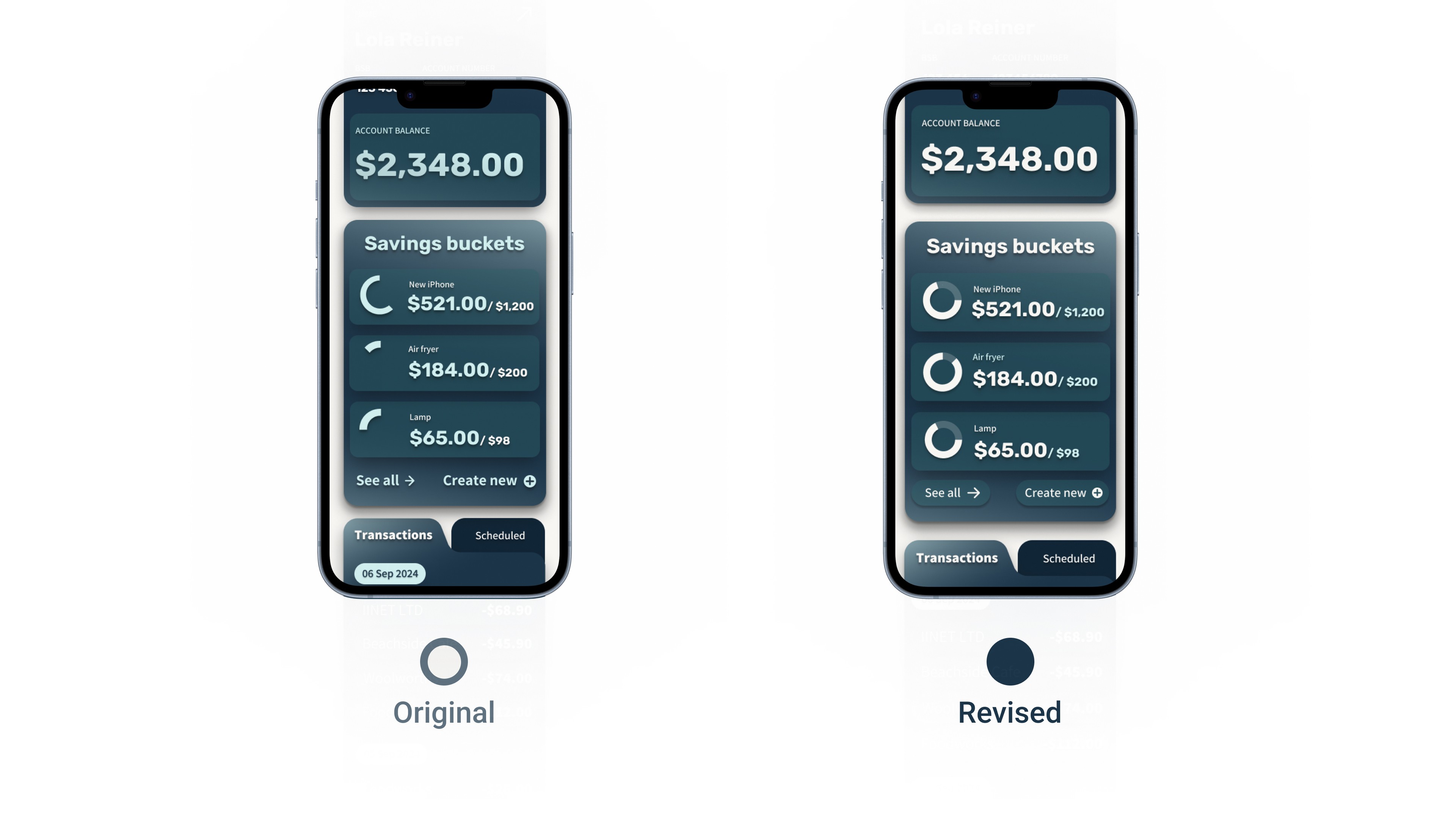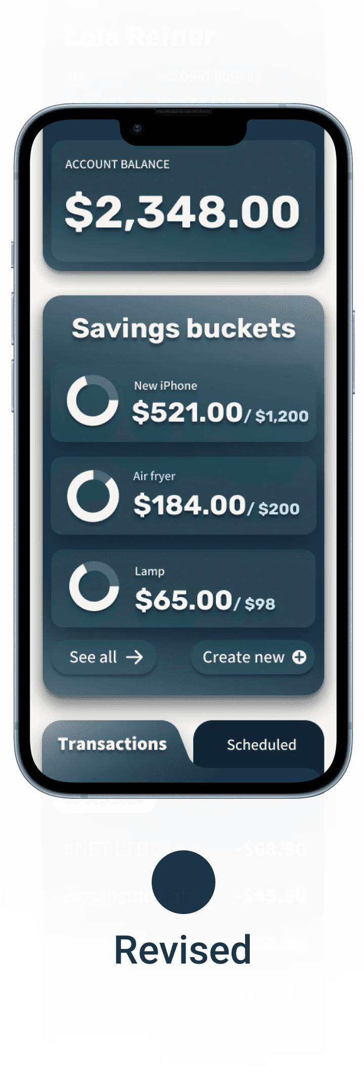 The savings bucket buttons were redesigned for clearer, more intuitive interactions, making actions easier to understand and reducing cognitive load.