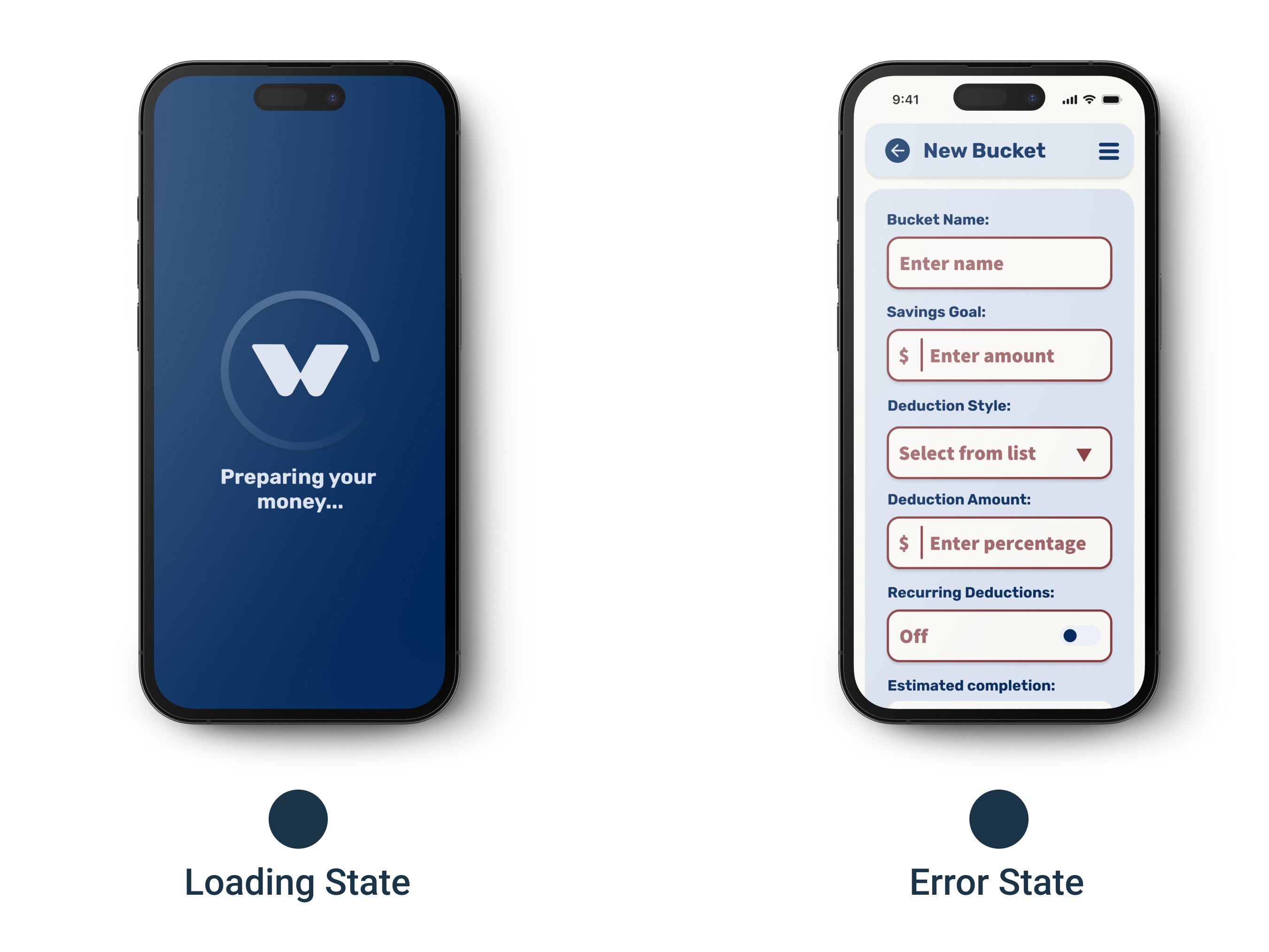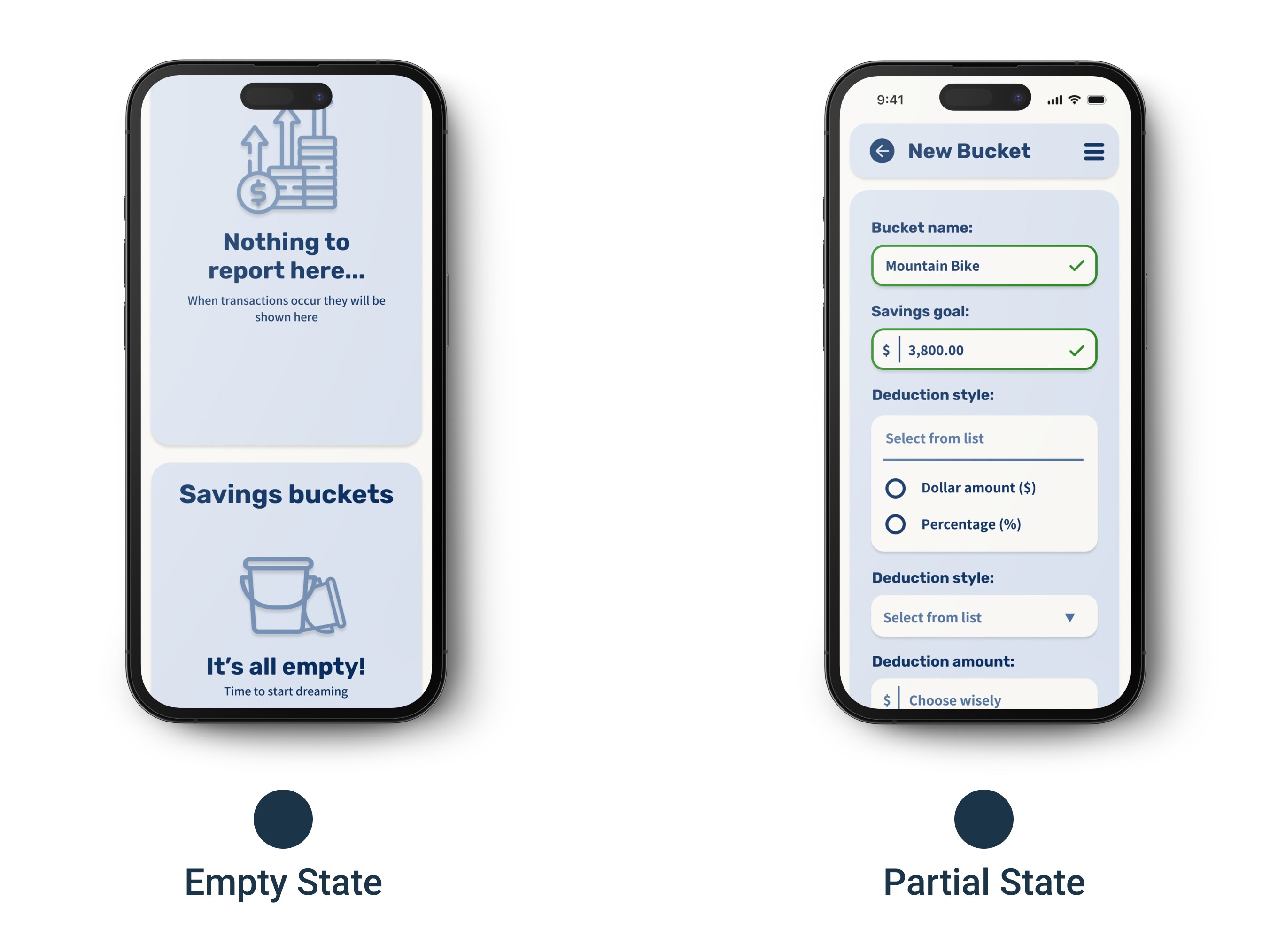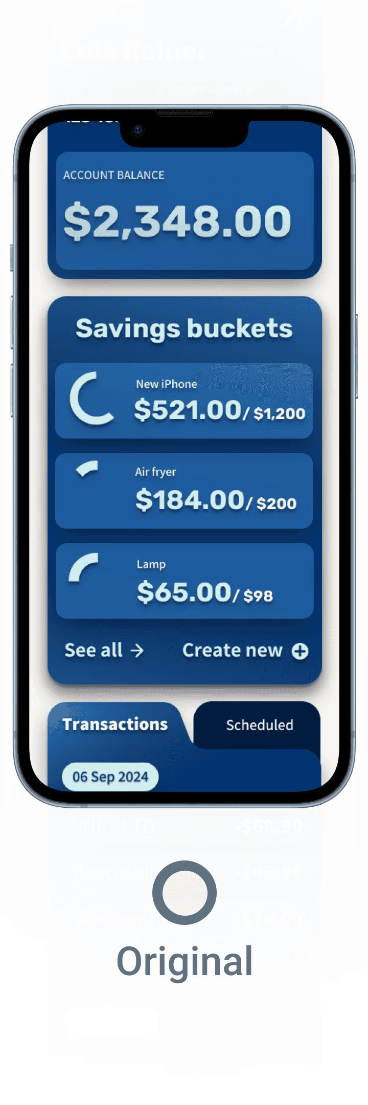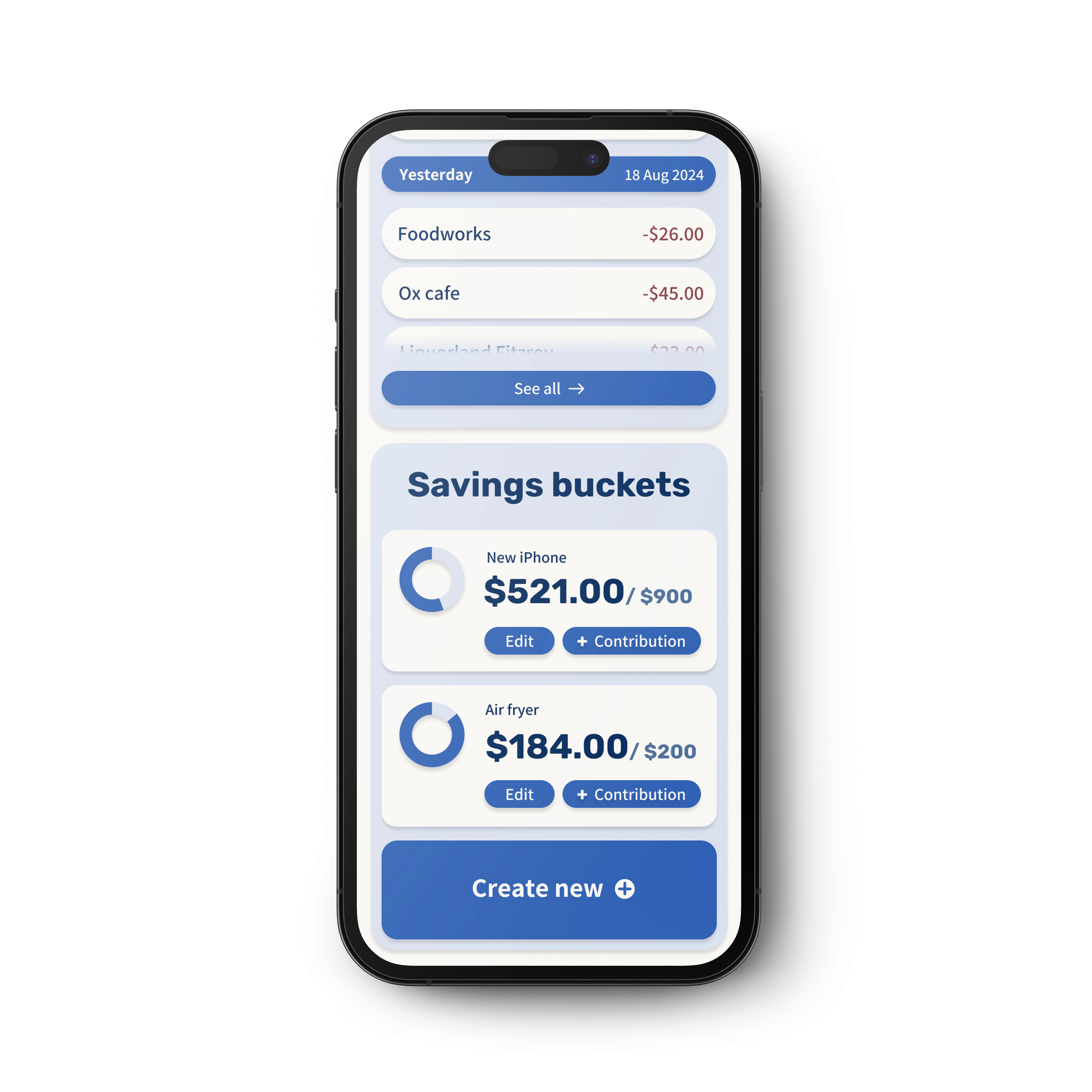 The savings bucket buttons were redesigned for clearer, more intuitive interactions, making actions easier to understand and reducing cognitive load.