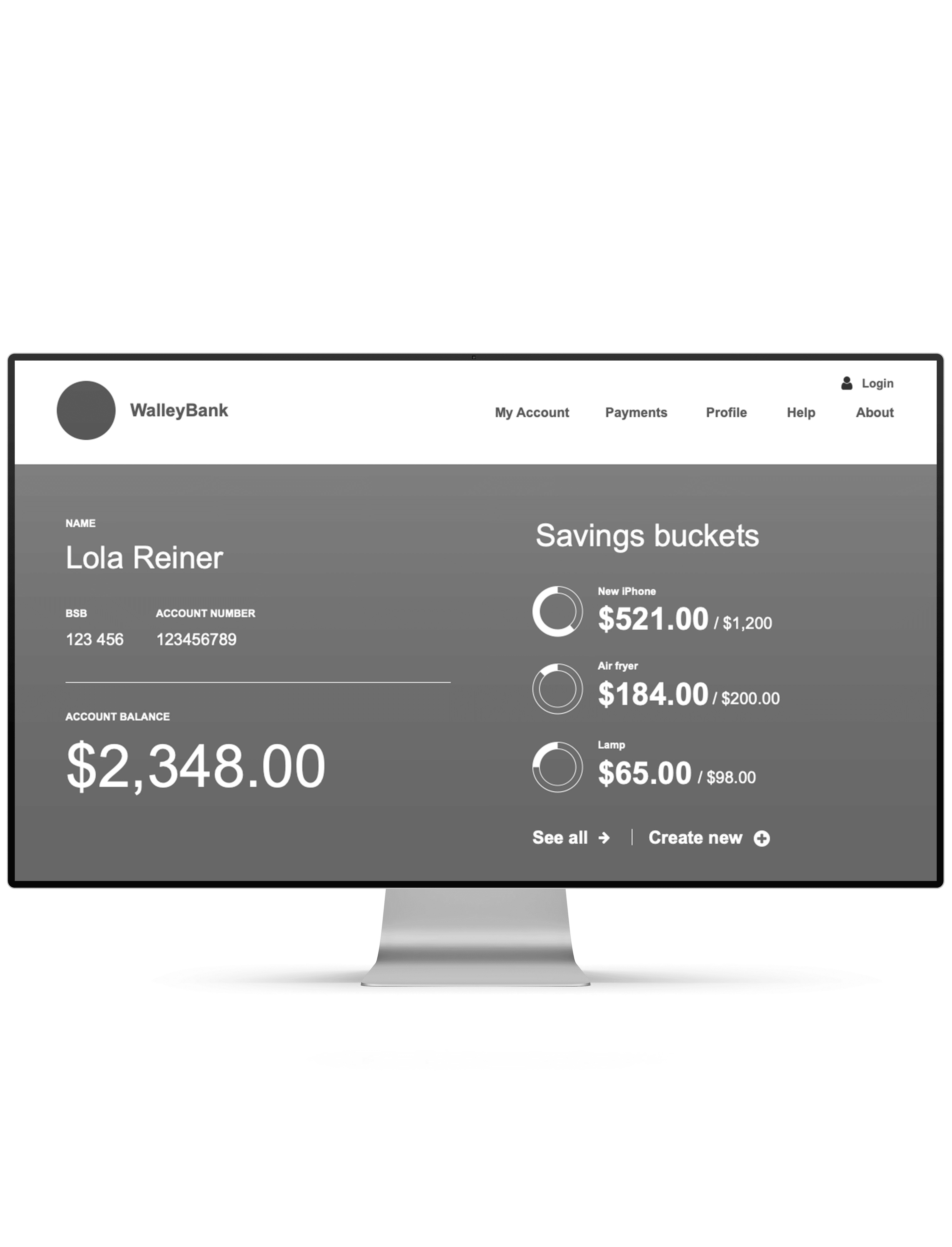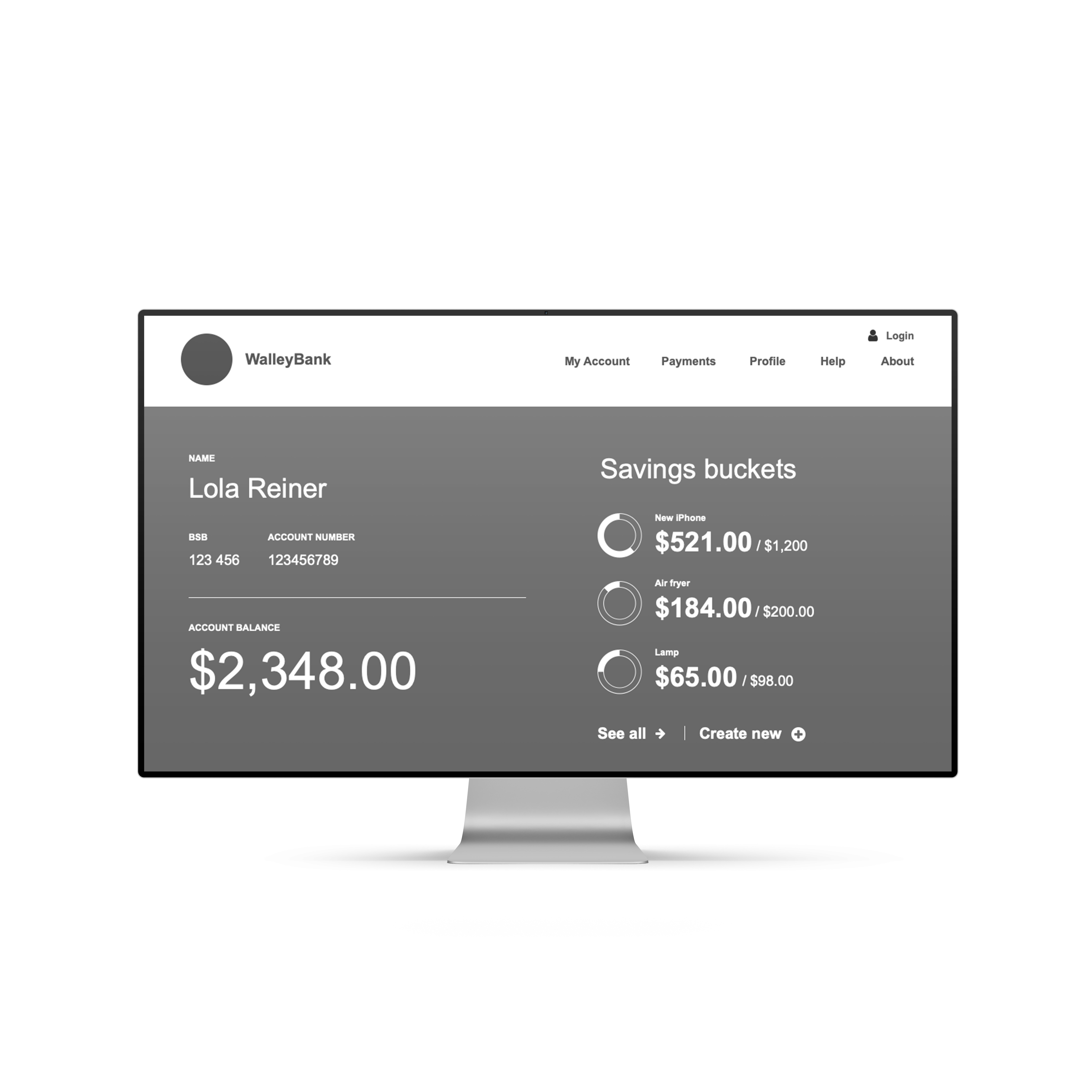 Research found that a significant group of people have the desire to save, but have difficulty staying on budget. WalleyBank will separate the user’s money into buckets by a percentage set by the user. This gives the control of saving to the user and provides them more visibility around what they are spending.