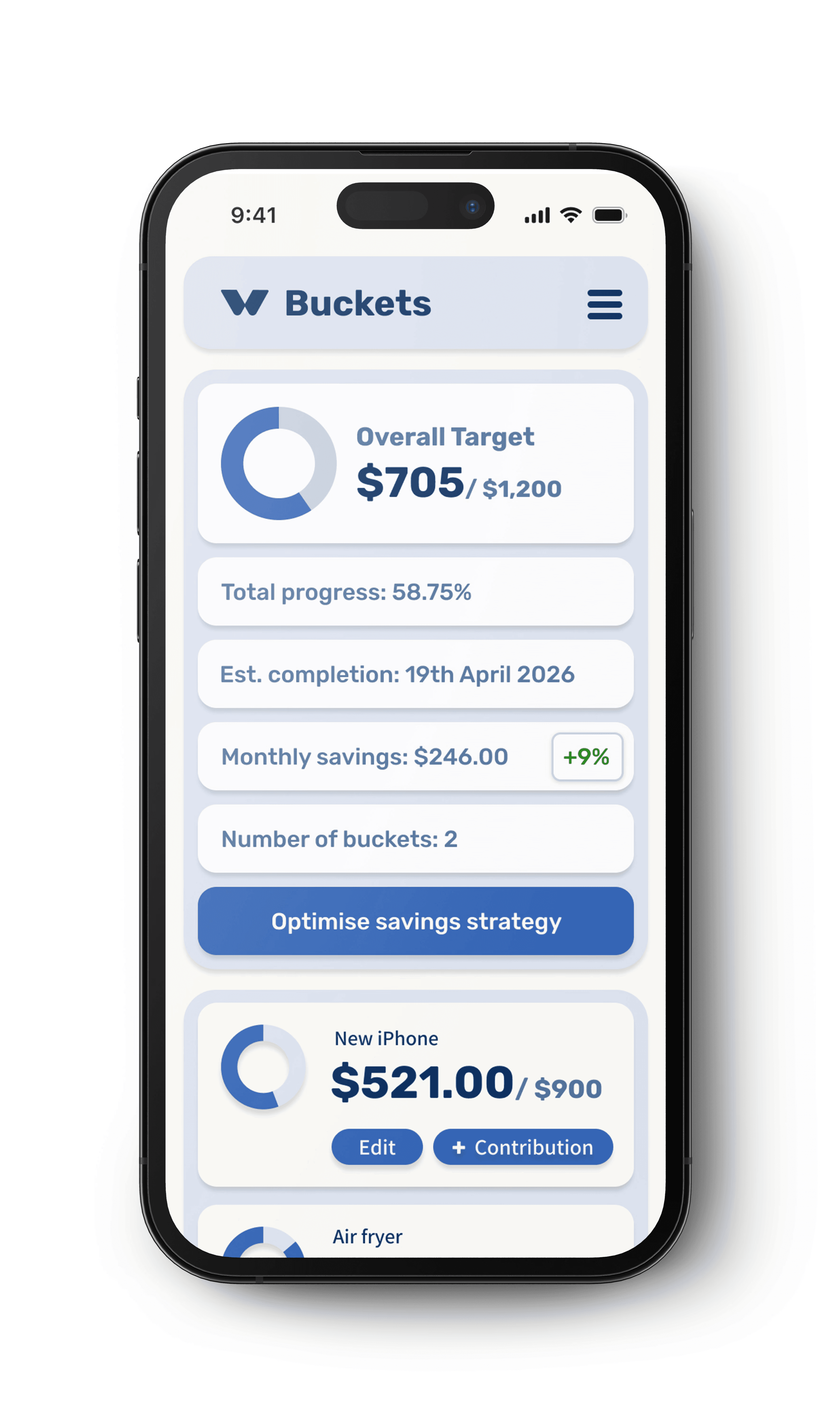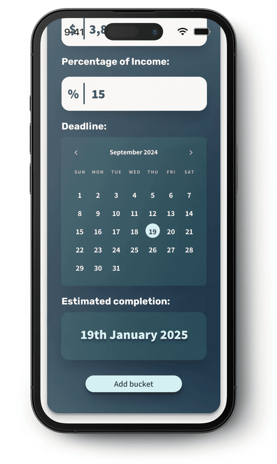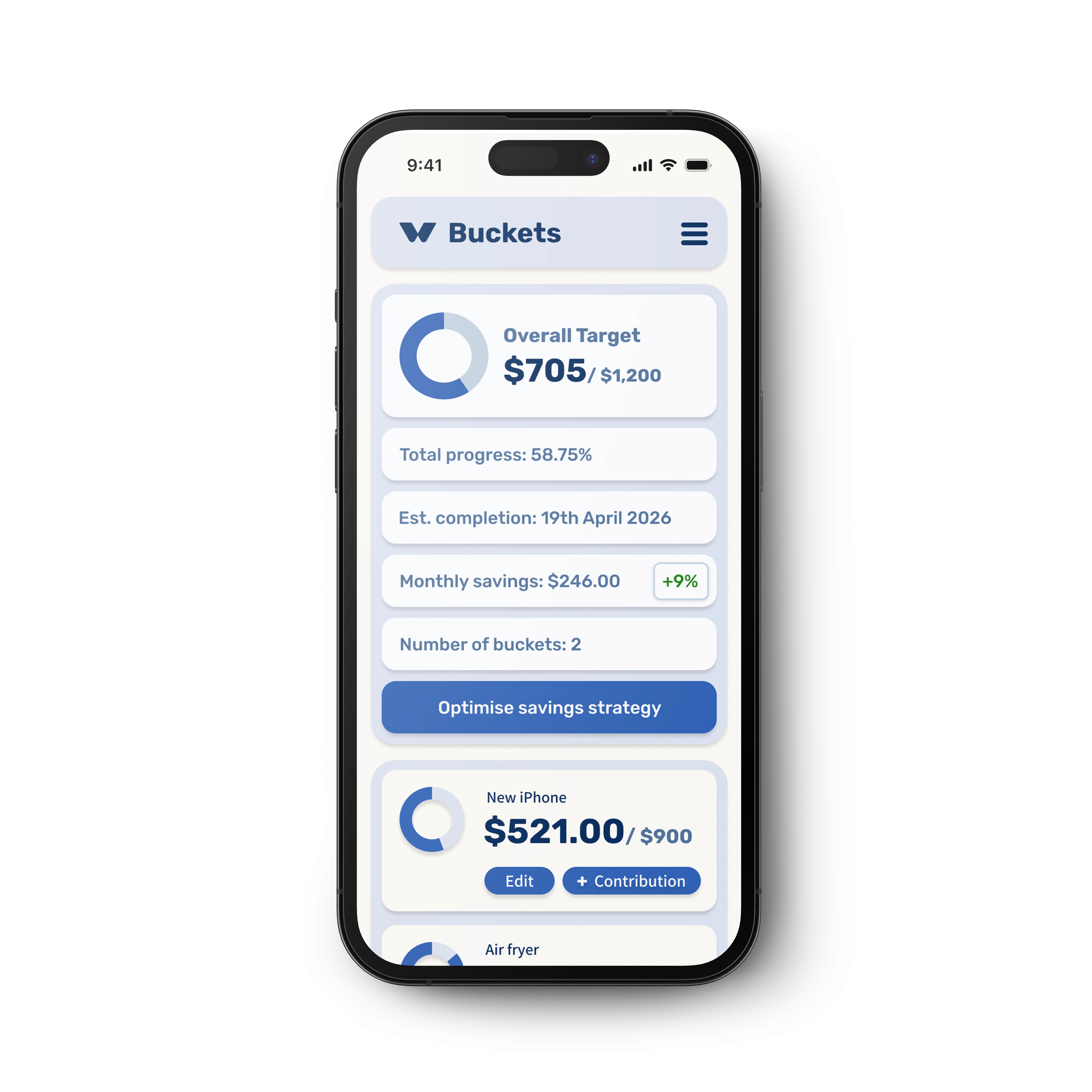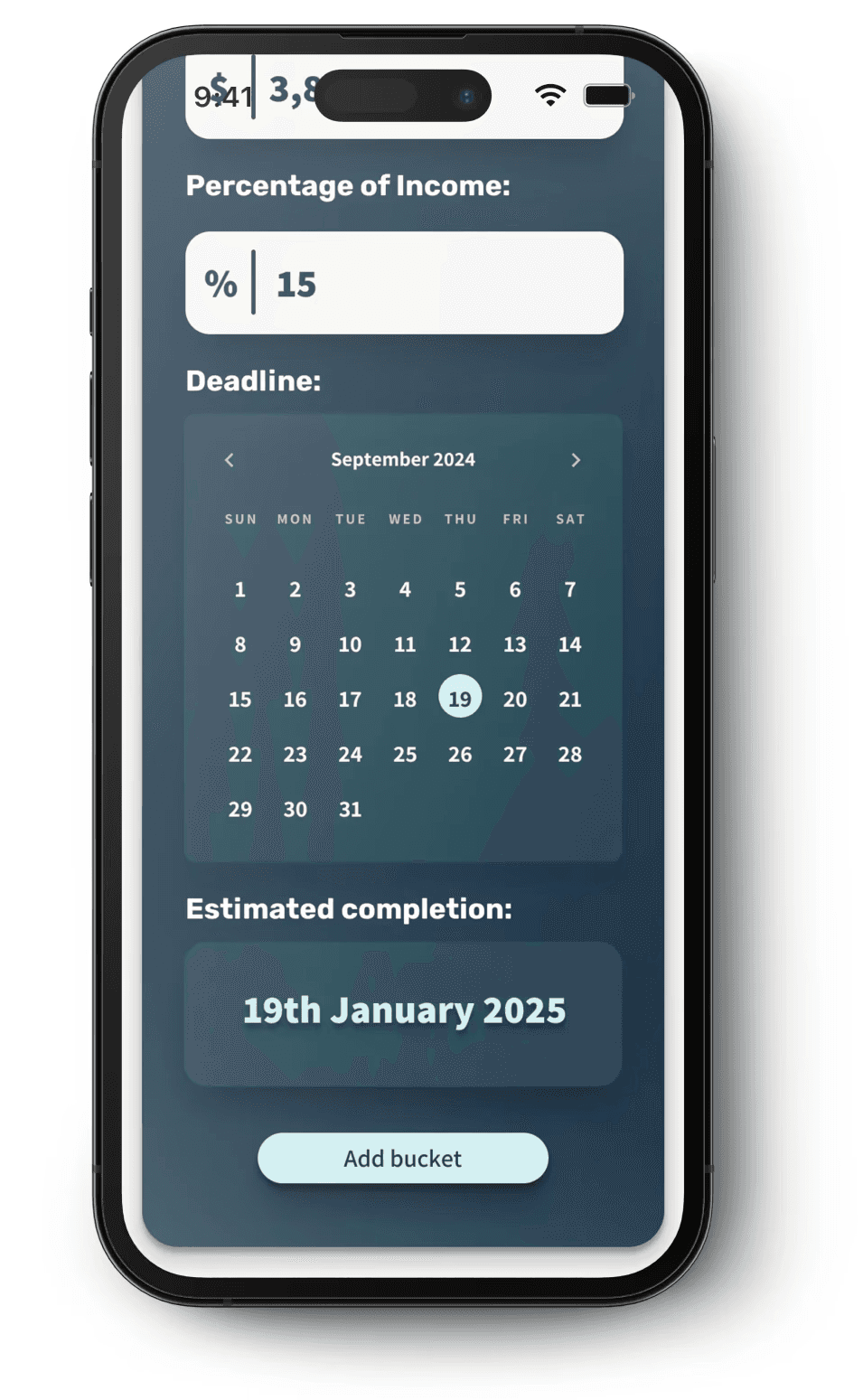 Create a page where users can easily manage buckets with intuitive controls, customisation, and clear progress indicators to achieve financial goals confidently.