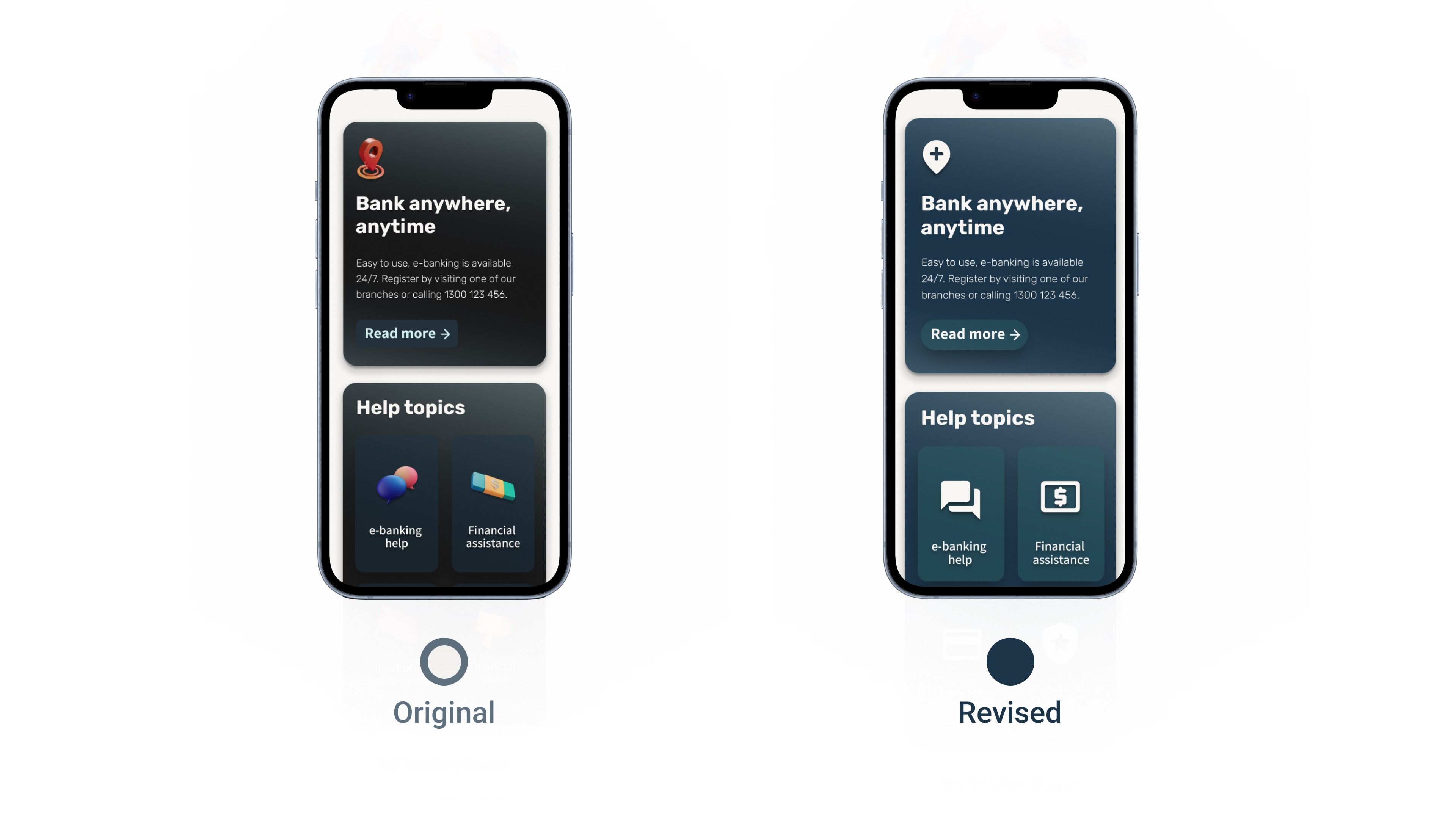 3D icons were replaced with 2D versions to match the platform’s modern aesthetic, improving visual consistency and reinforcing a clean, trustworthy interface.