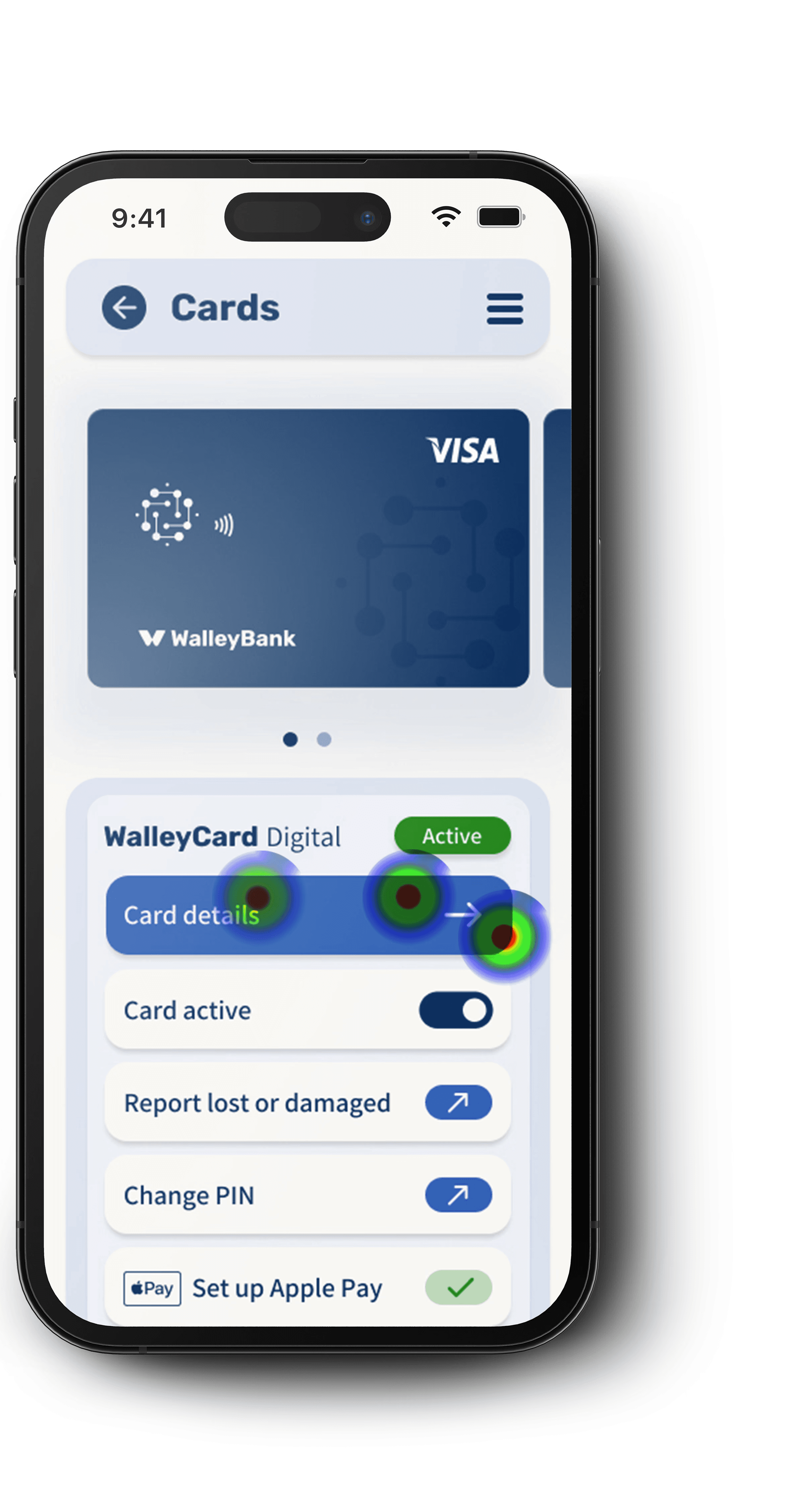 The Goal: As a new customer, the user was required to navigate the platform to find their new digital WalleyCard, authenticate their identity, and successfully copy the card number for an online transaction.