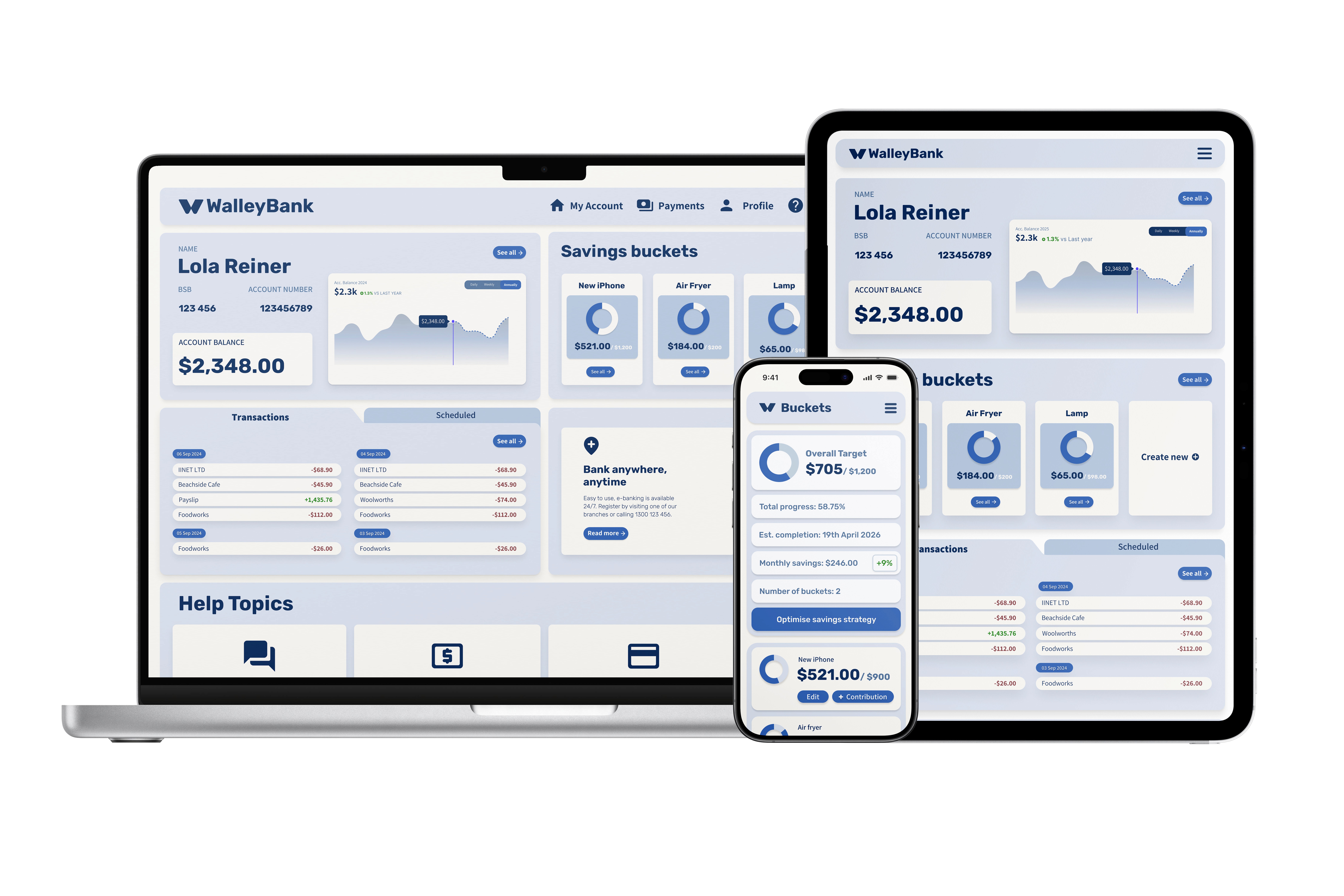 Many people want to save money but research found that users find it difficult sticking to a budget without the right tools. WalleyBank’s vision was to empower users to set savings goals with clarity and ease, while feeling secure and in control of their finances.